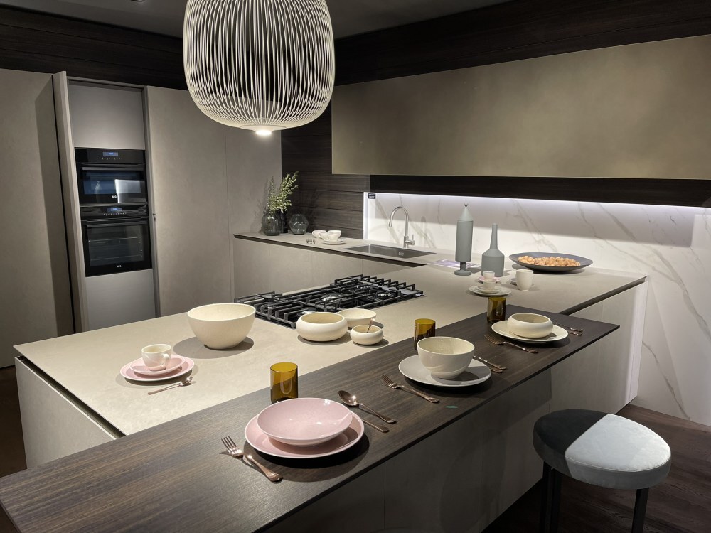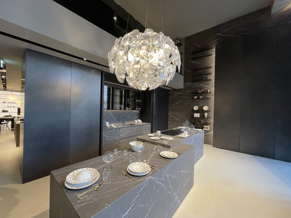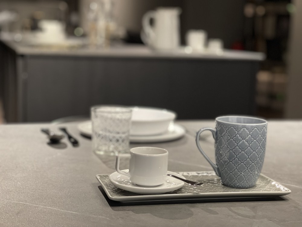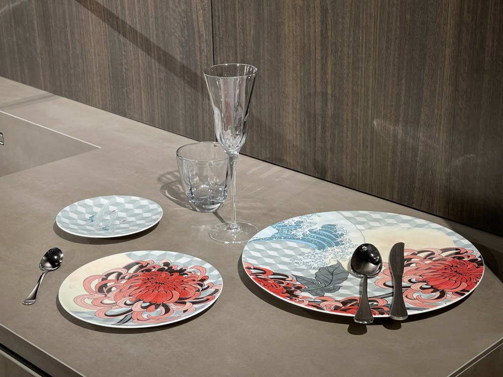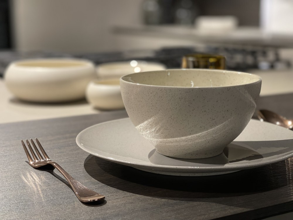 Al piano superiore, all'ingresso, ad accogliere i giornalisti era la linea Xmas, con la sua elegante porcellana decorata a risaltare sul marmo scuro della cucina in esposizione. Uno spazio era dedicato anche al bianco perfetto della linea Plus, in caolino neozelandese ultrawhite, ricca di accessori unici come il piattino avocado e il piattino per carciofo, per veri intenditori e amanti del bello.Â