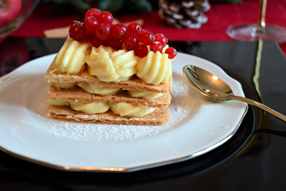 4. Millefoglie alla crema pasticcera nel piatto da dessert Elga oro.