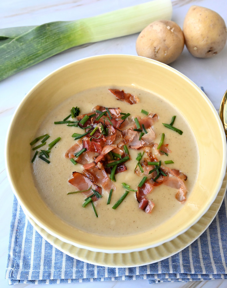 3. Vellutata porro, patate e speck nei piatti Country Chic Sabbia.