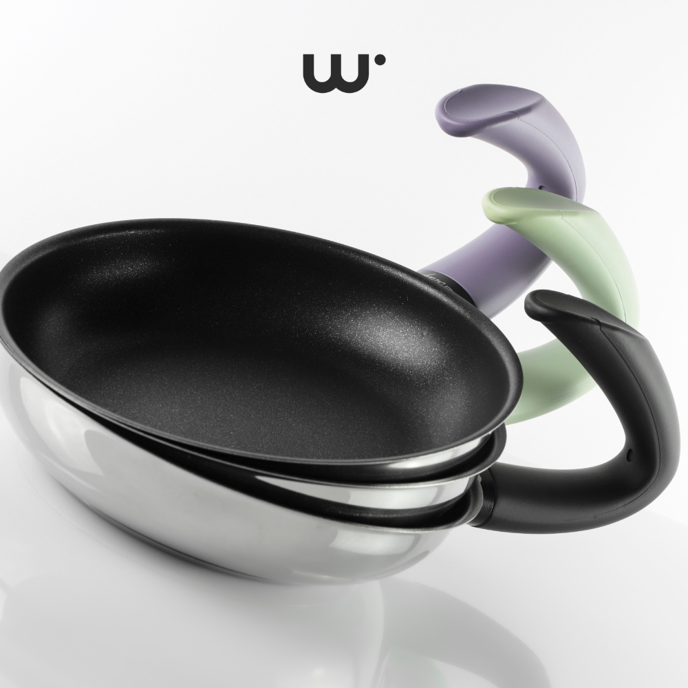 La linea Moderna si caratterizza per il corpo in acciaio lucidato, che restituisce leggerezza all’uso e alla vista, e per il rivestimento interno resistente ai graffi con polvere di diamante “Black Diamond”. È disponibile con due tipologie di manico: nella versione Smart la praticità incontra il design e la funzionalità di una forma curva brevettata e meritevole del Red Dot Design Award Honourable Mention, uno dei più importanti premi del design mondiale, che garantisce una serie di vantaggi tra cui la riduzione dello sforzo nell'uso, il miglioramento della presa e della sicurezza sui fornelli, la diminuzione del rischio di bruciatura accidentale del manico. Il manico Smart è disponibile in nero e nei colori dell’interior designer Andrea Castrignano: Ametista e Laguna. Nella versione Eco-logical, invece, il manico è realizzato a partire dalla lolla di riso, il cascame derivante dalla sbramatura del risone, il riso grezzo dopo la trebbiatura. Da questo ingrediente nasce una linea sostenibile che dona nuova vita ad un materiale altrimenti destinato ad essere gettato. La rivoluzione che fa bene all’ambiente, in un’ottica di economia circolare, inizia dagli scarti di lavorazione del riso. La linea del manico è unica e dal design moderno, grazie ai tratti squadrati e minimali. La sua lunghezza è maggiorata rispetto a quelli tradizionali come per il cookware professionale. La ghiera rivestita di nero e il logo W°Pots completano il design. Il fondo della linea Moderna è full-induction liscio, omogeneo e spesso, e consente una cottura uniforme e più rapida delle pietanze.