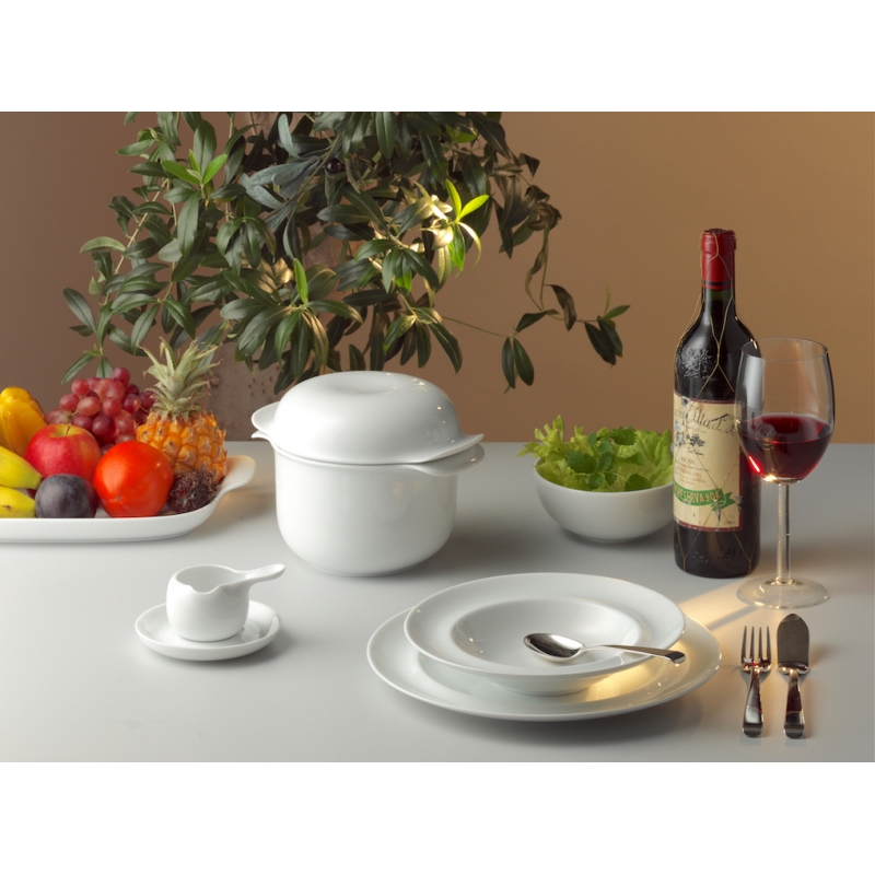 ULTRA WHITE e stile senza tempo. Una linea raffinata che si compone di piatti per la TAVOLA DI OGNI GIORNO e di ACCESSORI DI STILE per una CUCINA DA CHEF, come la salsiera dalla linea inconfondibile, il piattino da carciofo, il vassoio per asparagi e la coppetta avocado. Ogni articolo è essenzialmente perfetto, regolare, privo di porosità e liscio al tatto.