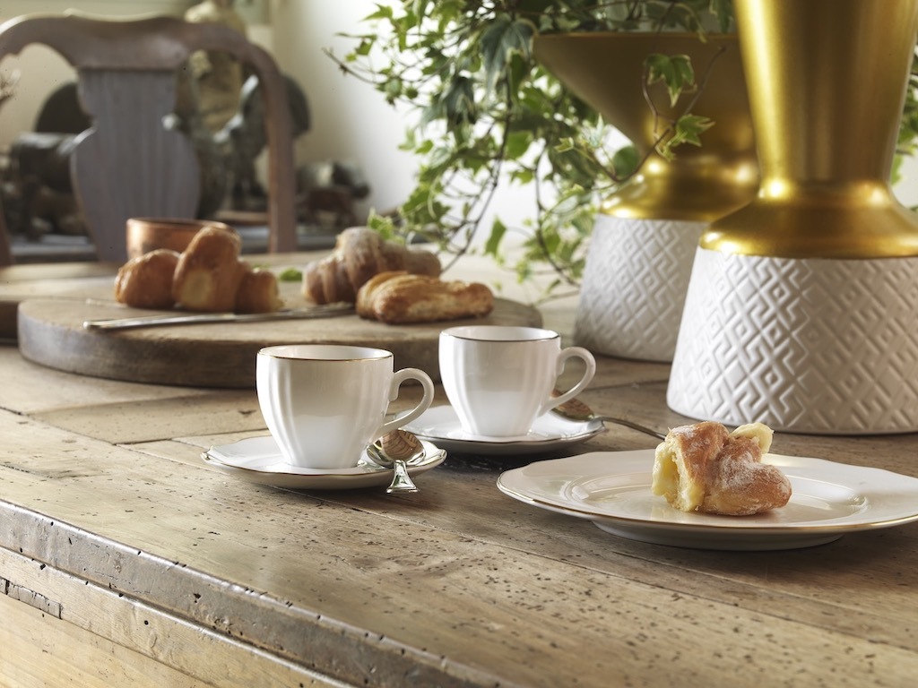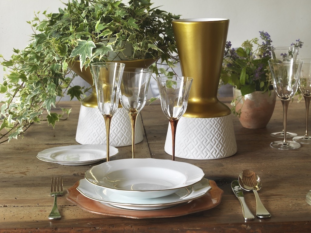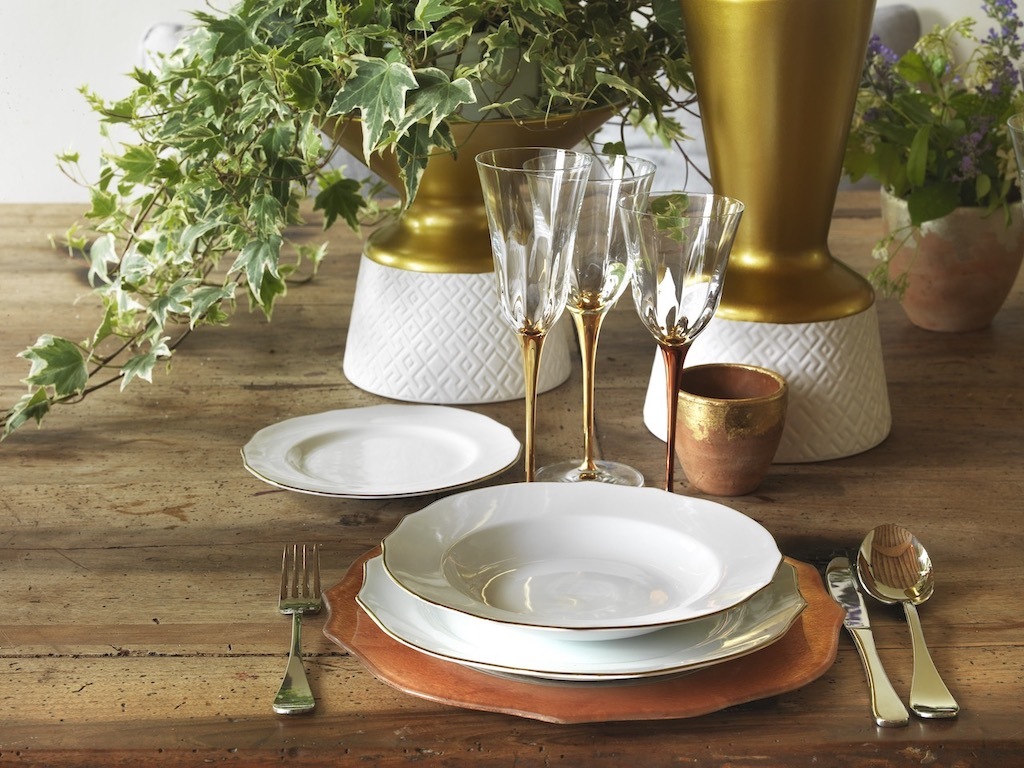Servizio tavola in porcellana. Collezione Elga Oro.