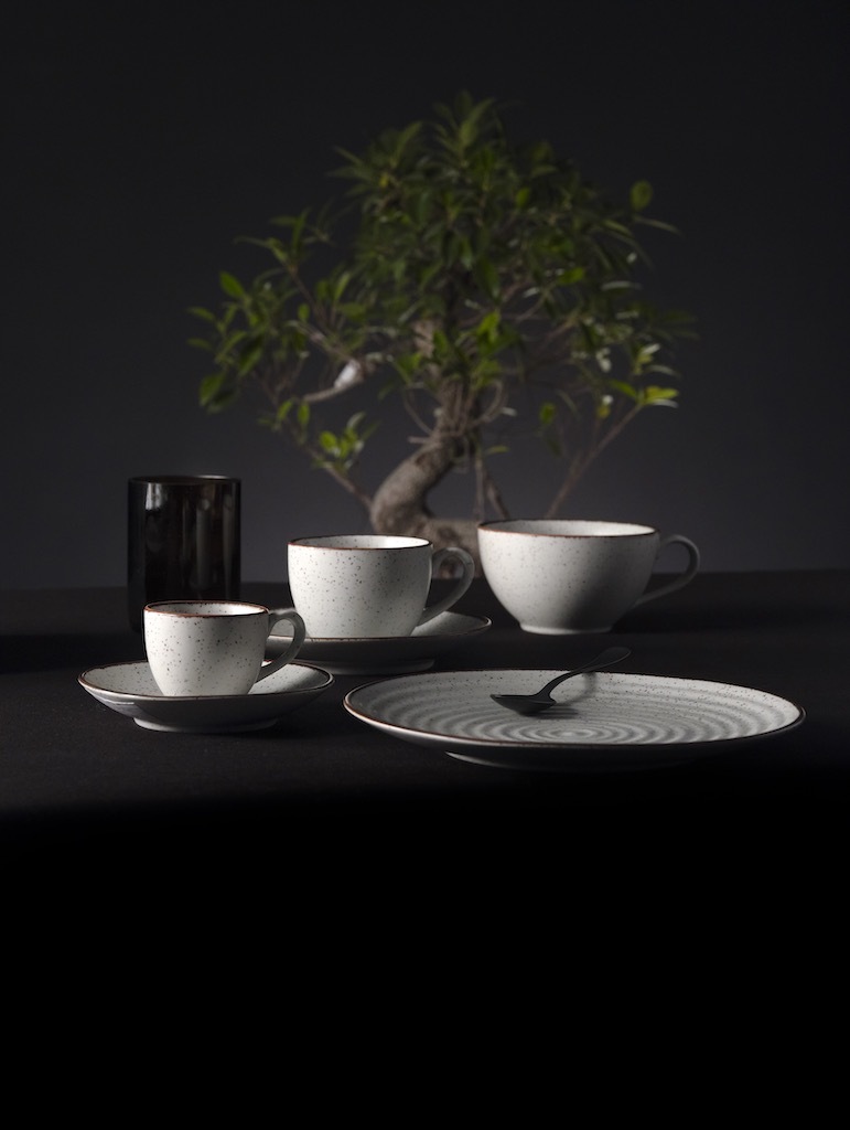 L’antica arte giapponese del giardino zen rivive sulla tavola grazie al decoro della linea Circus, in porcellana satinata dall’effetto mat, vellutata al tocco, piacevole al tatto e alla vista. I piccolissimi puntini, applicati a mano con smalti reattivi, così come il filo a chiusura, trasformano piatti e accessori in una distesa di sabbia, in un luogo di pace e di meditazione per riconnettere i sensi con ciò che ci circonda. Ogni cena diventa, così, un’esperienza immersiva in cui lasciarsi trasportare dalle sensazioni.